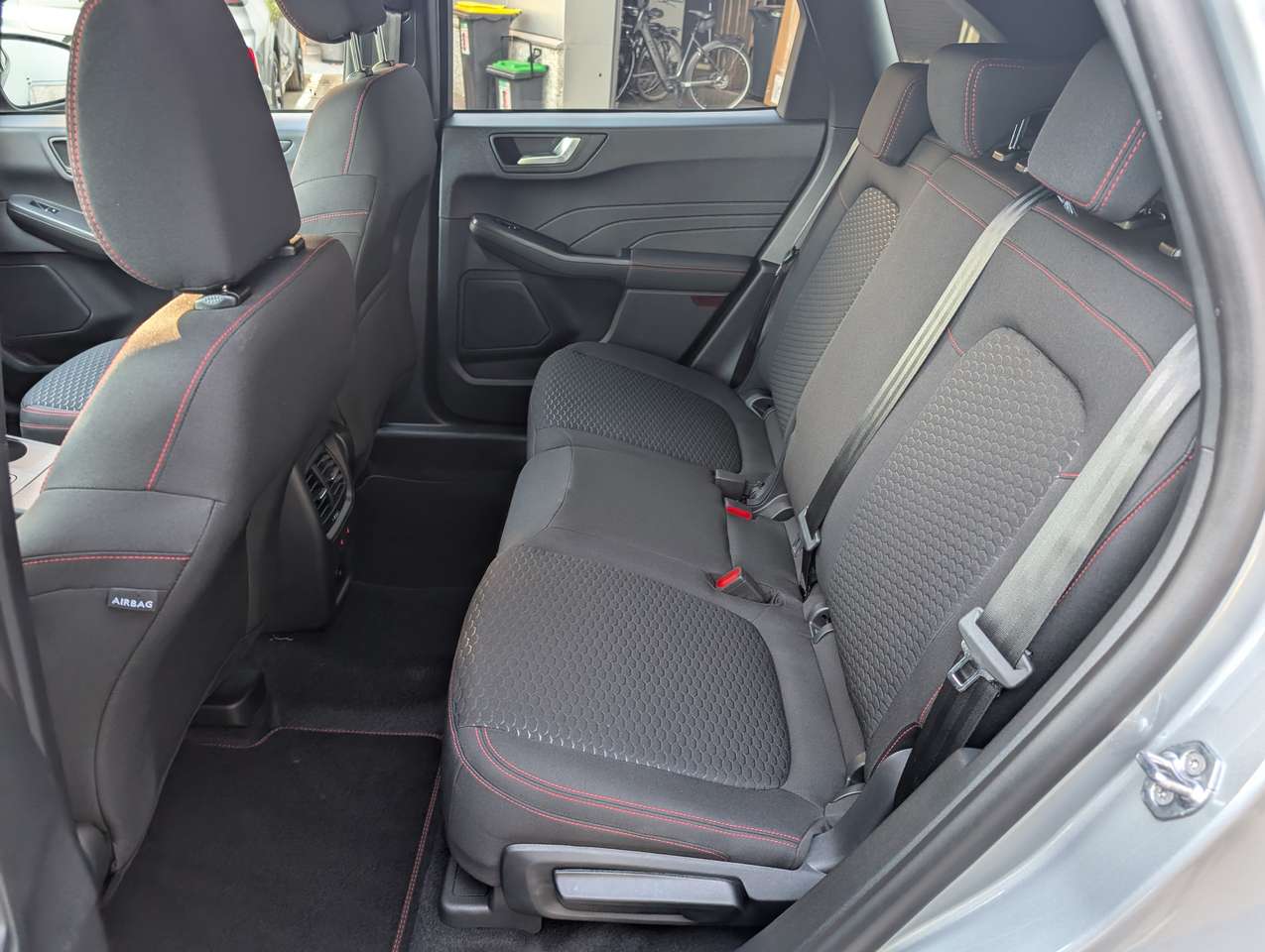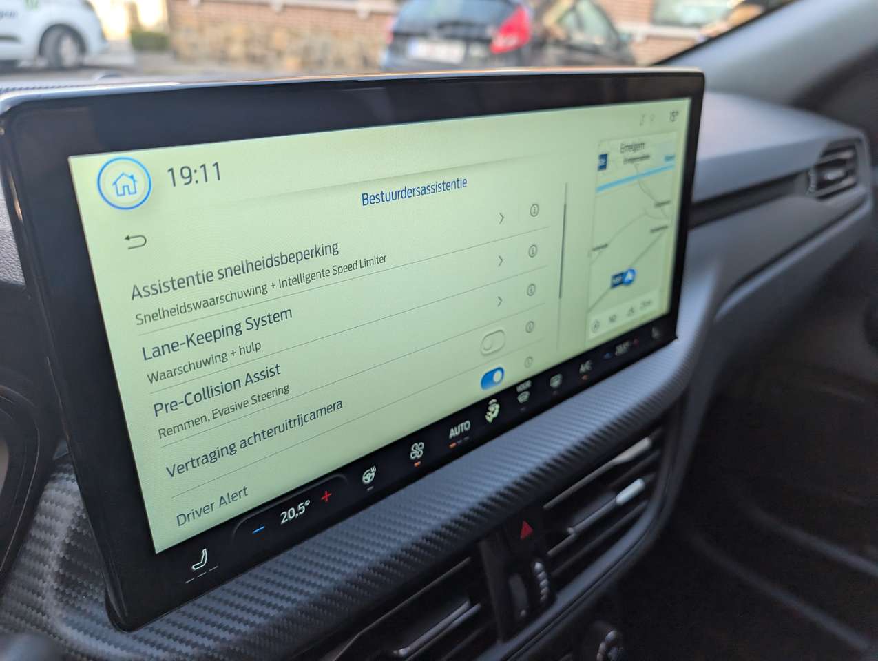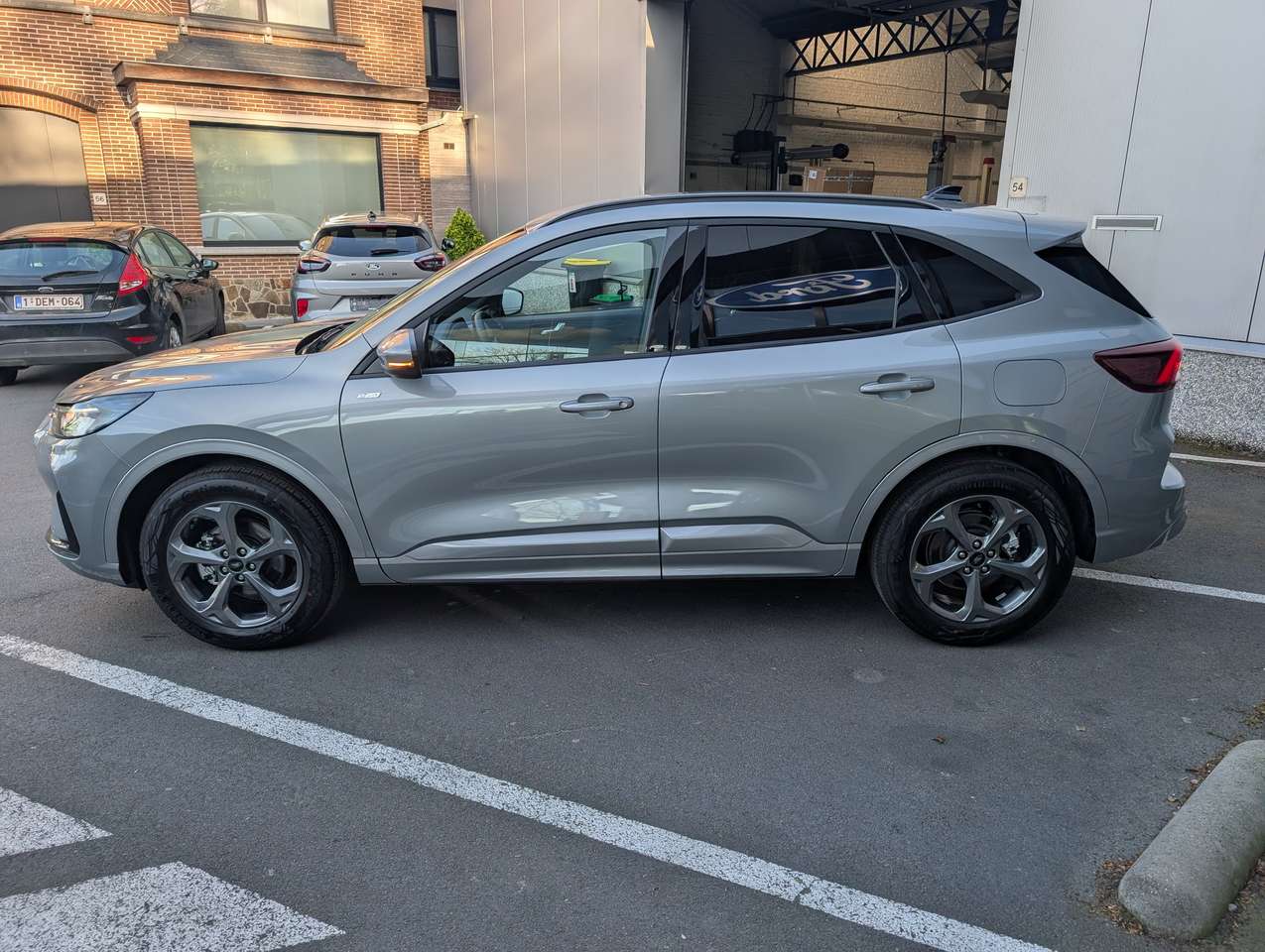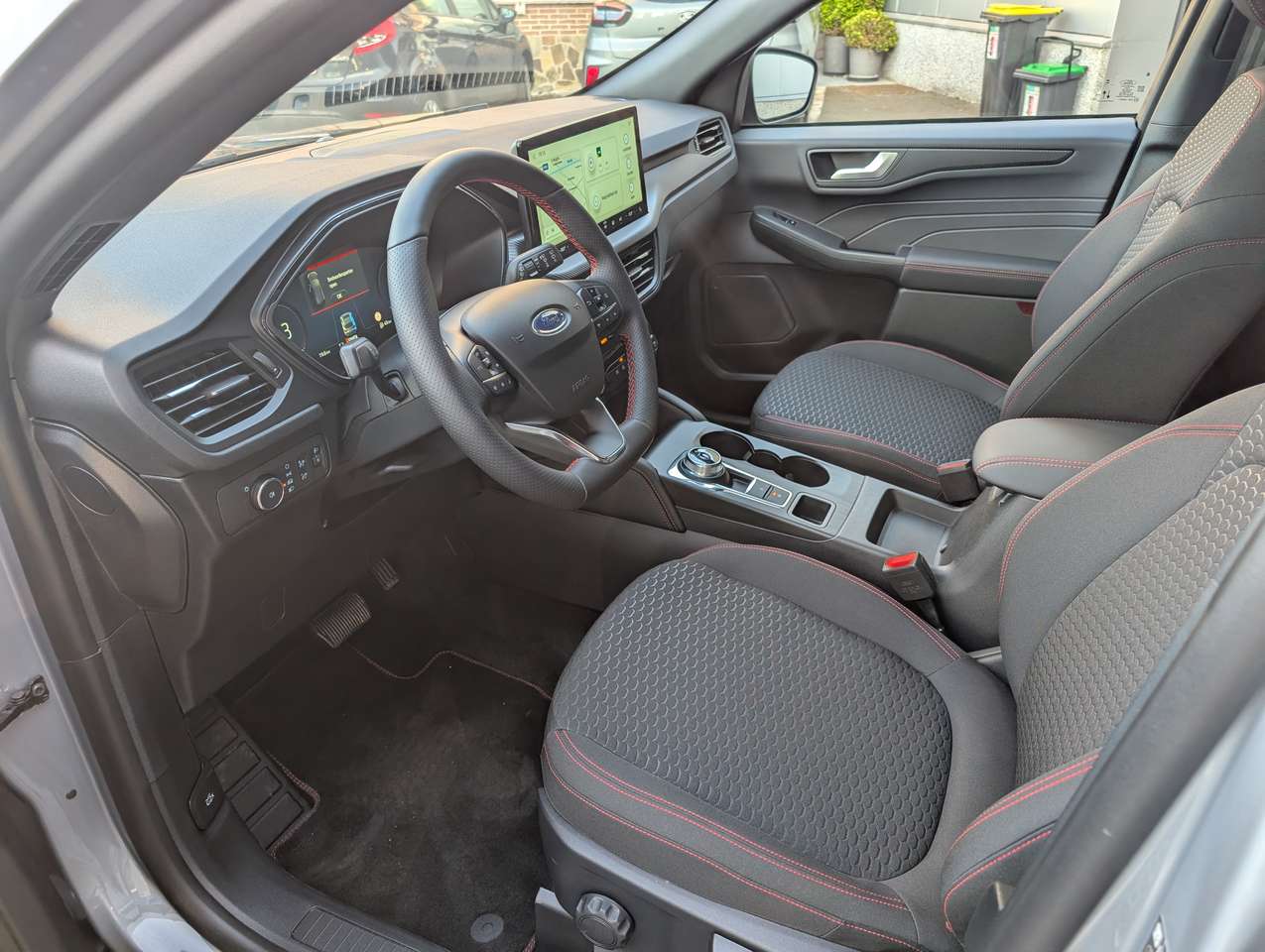 FORD GARANTIE EXTRA TOT 20/10/2030 max. 150.000 km // Ford Assistance 24/24u // Keuring en Car-Pass // Kleur Solar Silver, Navigatiesysteem, Digitale boordcomputer met 12" scherm, Radio FM/DAB+, SYNC4, 13,2" touchscreen, Bluetooth, Voice Control, Wireless Apple CarPlay/ Android Auto, Stuurbediening, USB aansluitingen, FordPass app geavanceerde verbindingstechnologie, eCall Europees noodhulpsysteem, Draadloos laadvlak voor smarthphones, Driver Alert bestuurdeswaakzaamheid, Auto Start-Stop, Active Grille Shutter, Keyfree start & entry, Frontale/ zijdelingse/ gordijnairbags voor- en achter, Uitschakelbare passagiersairbag voor, Gordelwaarschuwing 1e en 2e zetelrij, ISOFIX, ABS/ ESP/ EBA, Immobilisatiesysteem PATS, Bandendruksensoren, Lane Keeping System assistentie bij overschrijding wegmarkering met Road Edge Detection, Pre-Collision Assist met voetgangers- en fietserdetectie waarschuwing en indicatie afstand en actieve noodremassistentie, Post-Impact Braking, Traffic Sign Recognition herkent en toont verkeersborden, Cruise control, Parkeerhulp voor- en achter, Achteruitrijcamera, Instelbare Drive Modes: Normaal/ Sport/ Eco/ Slippery, Mistlampen voor, Automatische koplampen, Automatische grootlichten, LED koplampen, LED dagrijlichten, LED achterlichten, Automatische ruitenwissers met regensensor, Automatisch dimmende interieurspiegel, Elektrisch bedienbare/ verwarmbare/ inklapbare spiegels in koetswerkkleur met geintegreerde knipperlichten en instapverlichting, Donkergetinte ruiten achter, Deur- en koffergrepen in koetswerkkleur, Ford Easy Fuel, Dubbele uitlaat, Stuurkolom in de hoogte en diepte verstelbaar, Elektronische handrem, Premium centrale console met bekerhouders/ opbergvak/ armsteun, Elektrisch bedienbare ruiten voor- en achter, Dubbele automatische airco, Verlichting in de zonnekleppen, LED-leeslampjes voor- en achter, Sfeerverlichting, Verlichting in het handschoenenkastje en koffer, Bagagescherm, 12V aansluiting in de kofferruimte, Sjorogen in de kofferruimte, Voorzetels 6-weg verstelbaar (voor/achter, hoogte, rug), Lendensteun op voorzetels, 2e zetelrij 2-weg verstelbaar (voor/achter), Achterbank (rug) neerklapbaar in 2 delen (60/40), Opbergvak tussen eerste en tweede zetelrij, Sportief afgestelde ophanging, Sportieve voor- en achterbumper in koetswerkkleur, Unieke radiatorrooster met ST-Line afwerking, Unieke zijskirts, Zwarte lijst rond de ruiten, ST-line Badge, Zwarte langsliggers, 18" lichtmetalen velgen Rock Metallic 225/60 R18, Donkere dakhemelbekleding, Sportief Sensico stuurwiel met afgevlakte bodem, Afwerking interieur met rode stiksels